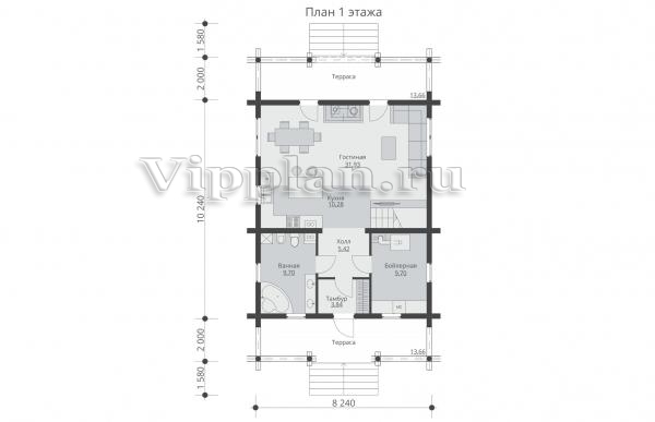 | Размеры дома: | 14.24м×8.24м |